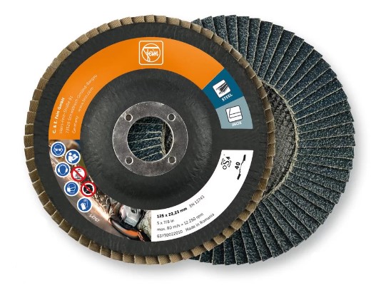 Poistohiontaan ja hitsaussauman työstöön, hyvä käyttöikä. Käytettävissä yleisesti teräkselle ja ruostumattomalle teräkselle. Taivutettu muoto, sisähalkaisija 22,23 mm, maksimaalinen kierrosluku 12 250 1/min, maksimaalinen työnopeus 80 m/s.